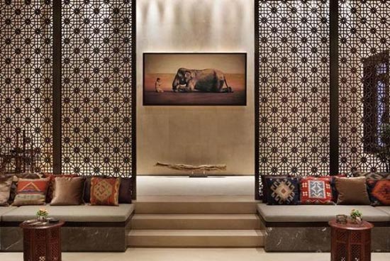 依據住宅使用人數和私密程度的不同,使用中式的屏風(fēng)出分隔出功能性空間,對室外的過(guò)道顯出神秘的層次感。
